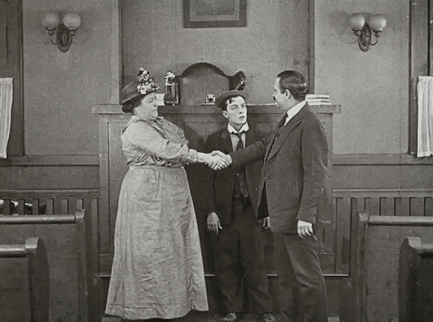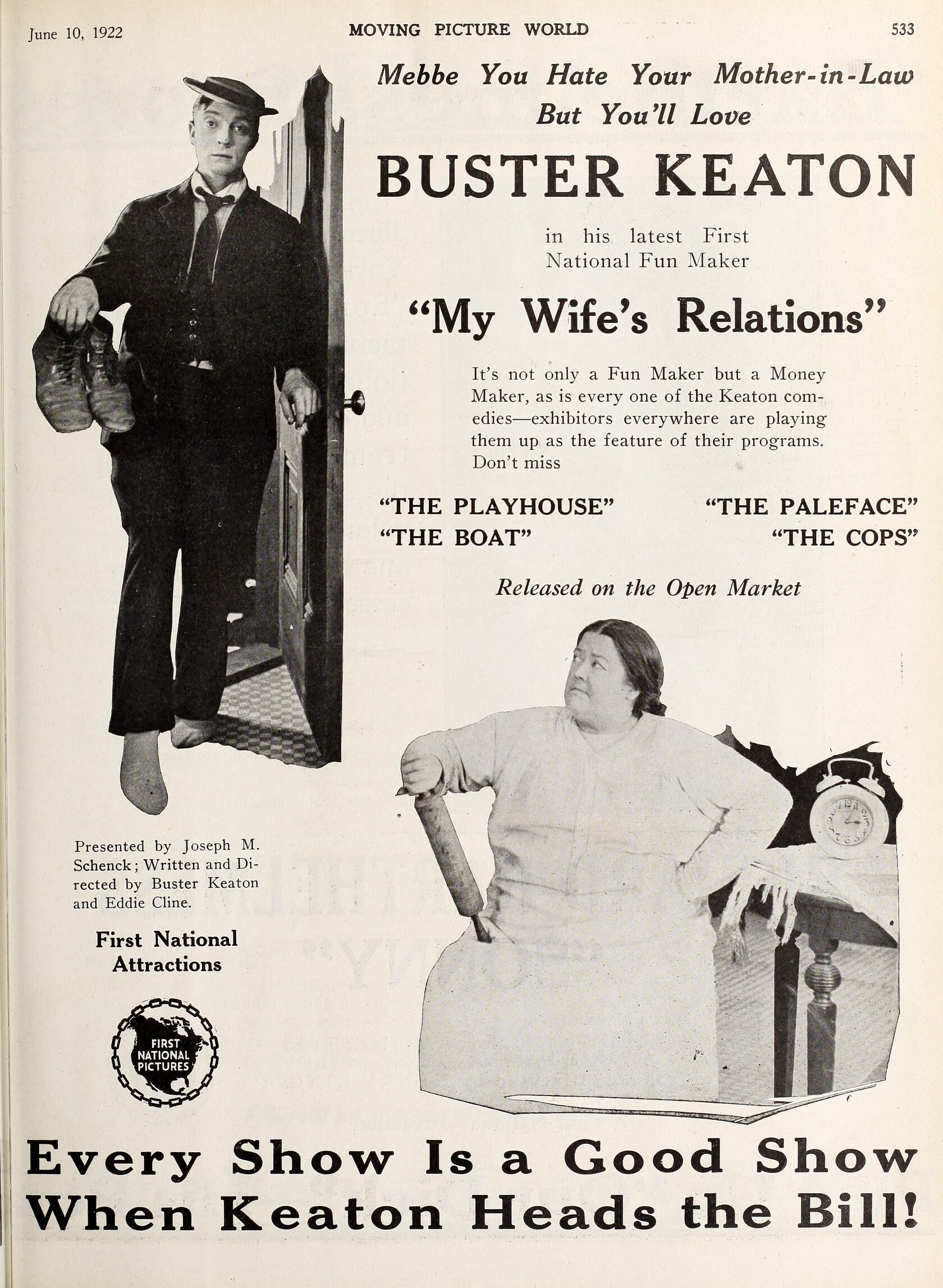 недавно поведали в мыльной опере (или хоррор-сериале?) о его первом браке, всего через три месяца после женитьбы на Натали Толмадж, сестре двух знаменитых киноактрис, к Китонам в дом переехала жить сначала ее младшая сестра, Констанс, а вслед за ней – мать, Маргарет "Пег" Толмадж (действительно, ирландка по происхождению). После этого переезда, в начале октября 1921 года, газеты шутили, не стоит ли Китону создать следующую картину под названием "Родня моей жены"? На деле это случилось только через три месяца - в январе 1922 года, за считанные дни до начала работы над фильмом, Толмаджи, когда-то выходцы из небогатых бруклинских кварталов, действительно вынудили Китона арендовать шикарный трехэтажный особняк вместо относительно небольшого дома, в котором молодые поселились после свадьбы. Как настоящие "родственники жены" отреагировали на готовый фильм, история, к сожалению, умалчивает.