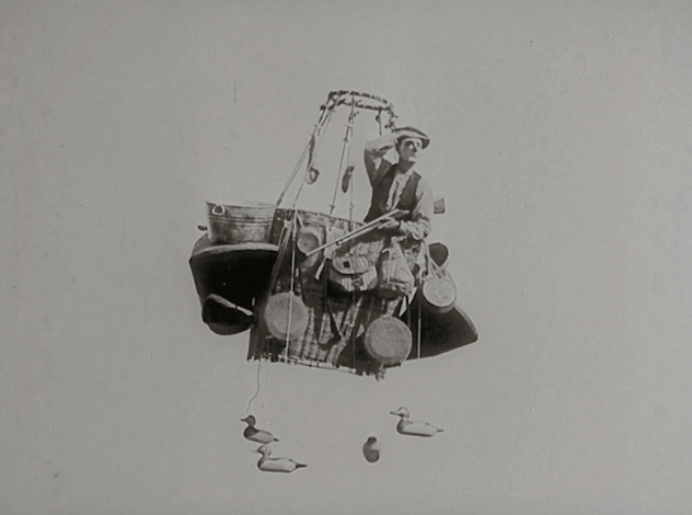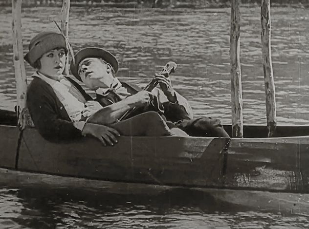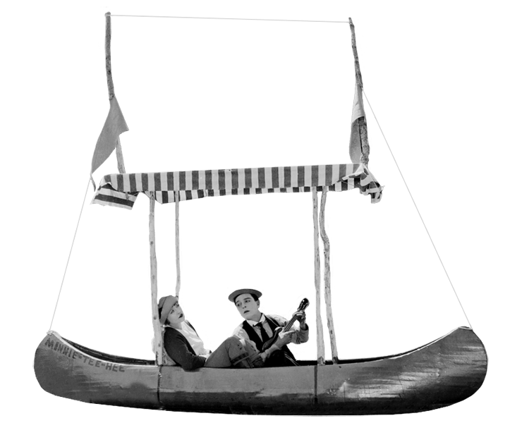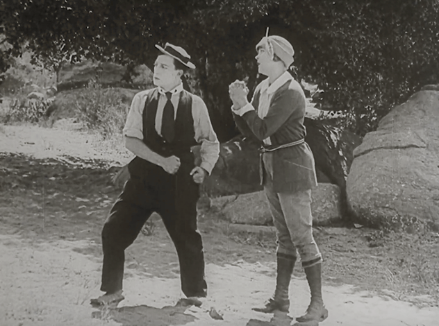Остальное время Бастер пытается доказать Филлис свою доблесть в чисто мужских делах - рыбалке, охоте и дикой жизни вообще. В ироничном соответствии с витавшими тогда в воздухе идеями о женском равноправии, он всякий раз проигрывает леди - она не только способна устроиться на местности лучше, чем неумелый Бастер, но вполне может остановить на скаку коня, вернее, взять за рога и голыми руками уложить атакующего ее быка. Сцены снимались на реке Траки в Неваде, и работа на природе позволила Китону не только получить красивые кадры, но и логично задействовать животных-актеров - не последние роли в "Шаронавте" исполняют крольчиха с крольчатами, упомянутый очень рогатый бык и пара медведей. Китон всю жизнь обожал животных и они отвечали ему взаимностью - многие вспоминали, как к нему почти магически льнули любые звери, птицы и даже бабочки, и по сообщениям прессы, медведи на съемках соглашались слушаться только его. В фильме именно они завоевывают для Бастера сердце Филлис - битва полов заканчивается примирением, и в редком хэппи-энде под звуки серенад Бастера на укулеле лодка их любви отправляется в безмятежное плавание, уже не боясь никаких порогов и водопадов; а сам Китон – к долгожданным большим работам.