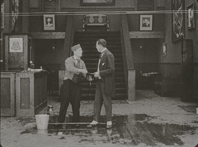 Отсутствие в «Коридорном» внятного сюжета компенсируется обилием оригинальных гэгов и сцен, многие из которых выглядят подозрительно китонскими: вот этот трюк с протиранием стекла, который Китон при наличии подходящего окошка с большим удовольствием исполнял на публике даже в 1965-м, мефистофелеобразный посетитель, наводящий на коридорных суеверный ужас, многоэтапный гэг с конным лифтом (его, кстати, как яркий пример извлечения максимума возможностей из ситуации разбирал в мемуарах