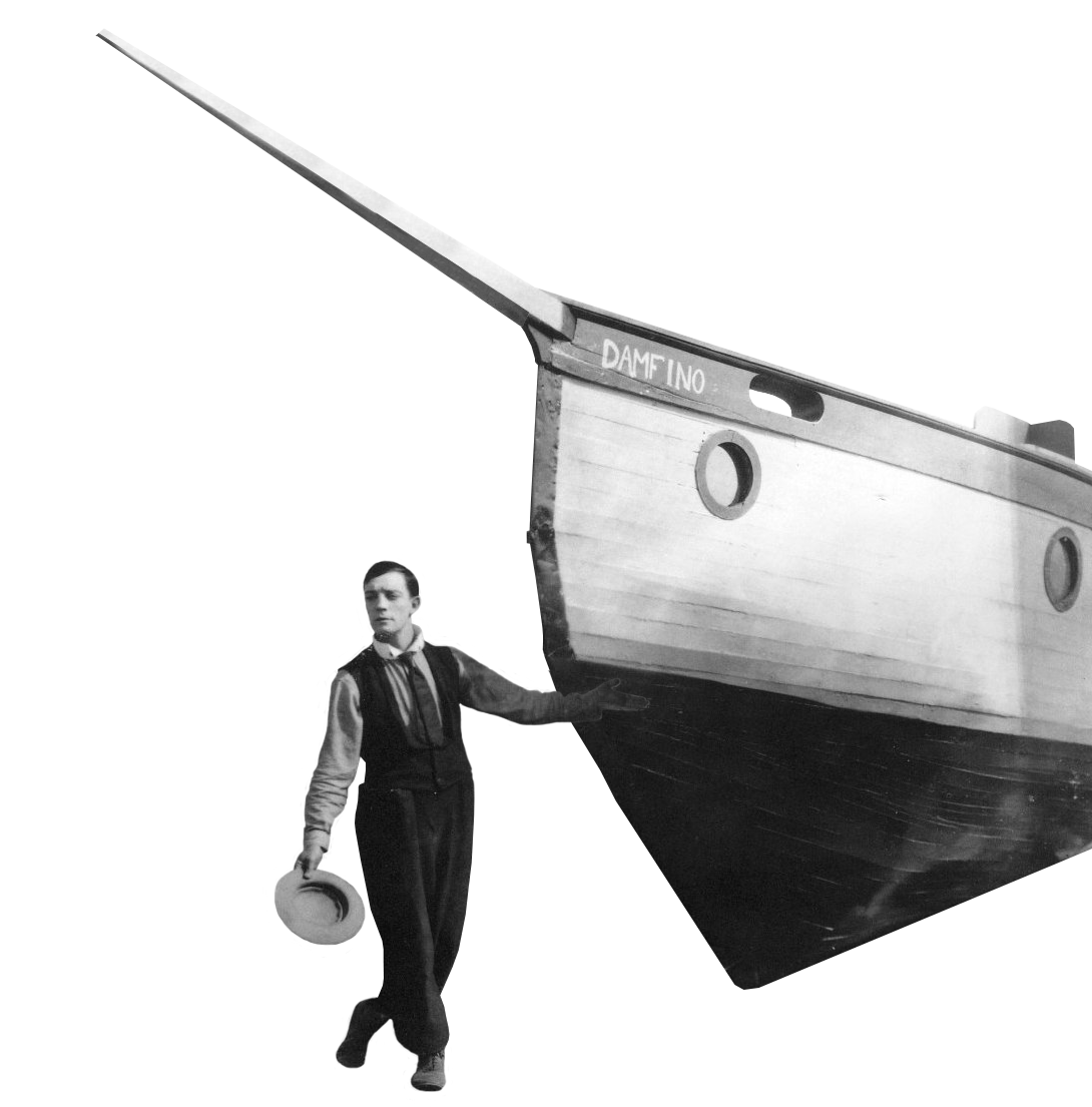События "Лодки" развиваются через несколько лет после "Недели" - у Бастера и Сибил теперь есть двое мальчишек (которые носят такие же плоские шляпы, как их экранный папа, и отличаются такой же нордической невозмутимостью). Как и первый фильм, "Лодка" крутится (буквально) вокруг одного большого реквизита - на сей раз, как нетрудно догадаться, лодки, которую Бастер по сюжету построил своими руками в подвале собственного дома, и откуда ее оказалось невозможно вытащить, не разрушив сам дом заодно. Китон говорил, что похожая история действительно произошла с его знакомым; да и шутку с названием лодки он тоже