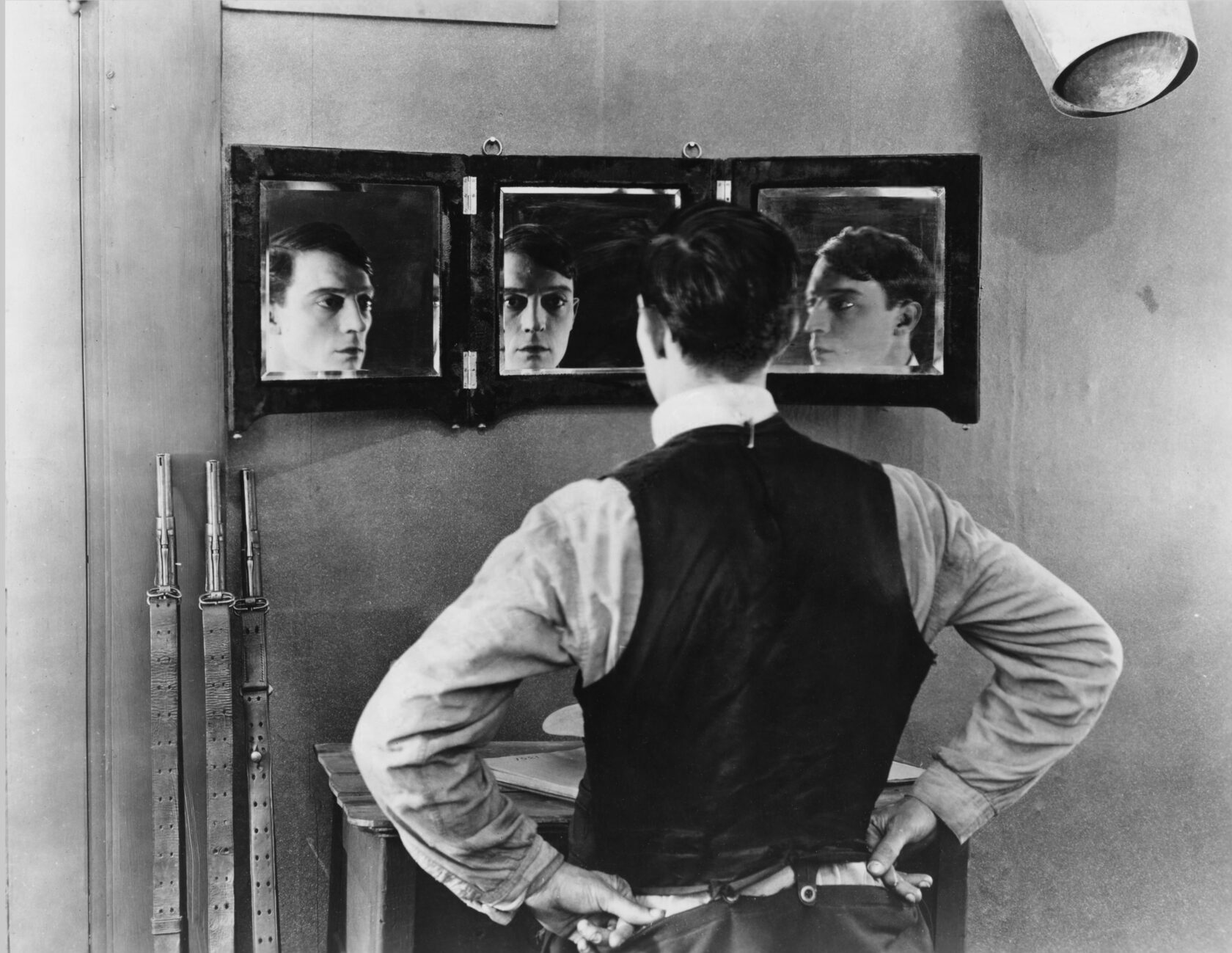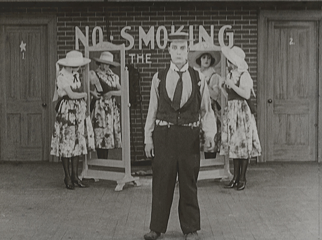 Но в конце концов, все хорошее когда-нибудь завершается - "Театр Бастера Китона" исчезает, а сам Бастер просыпается скромным работником сцены. Появляются другие персонажи (даже 45 лет спустя Китон сожалел о том, что не решился снять весь фильм из одного себя), но реальность театрального закулисья оказывается не менее иллюзорной, чем сон, от которого он пробудился. Бастера продолжают преследовать отражения, двойники и сюрреалистические метаморфозы - его дом оказывается декорацией, возлюбленная раздваивается (любовь Китона к зеркалам и симметрии обретает здесь непосредственное физическое выражение), а ему самому приходится превращаться то в (не слишком) дрессированную обезьяну, то в предводителя отряда зуавов*.