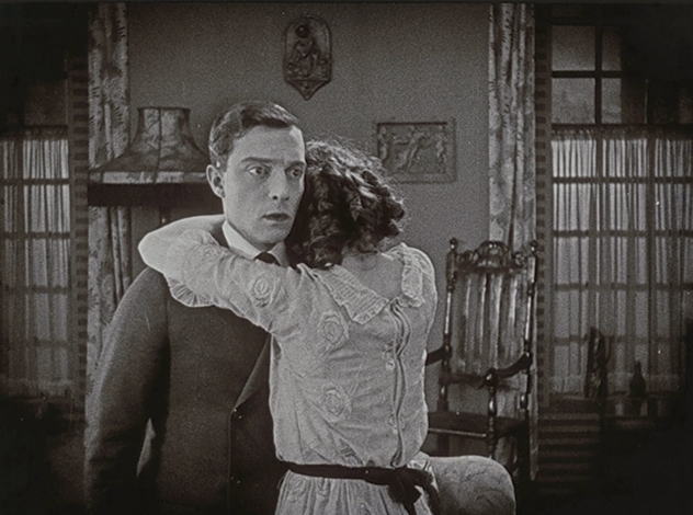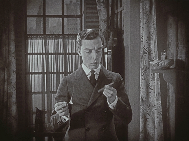 здесь). Всю свою жизнь, за исключением нескольких детских появлений на сцене в драматических ролях, Китон был звездой слэпстика — «низкого» комедийного жанра, основанного на частенько жестоком действии, акробатических трюках, гротеске, пародии и визуальных гэгах. Слэпстику противопоставлялся куда более престижный «высокий» жанр легкой или прямой комедии, где юмор заключался в сюжете, диалогах, характерах персонажей и ситуациях, в которые они попадали. Для «высокой» комедии, как и для драмы, требовались отнюдь не акробатические способности, но психологизм и достоверность актерской игры.